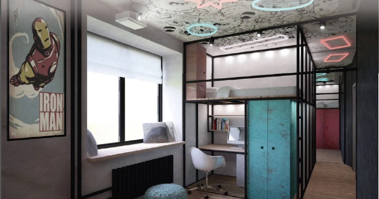Двери Sofi a подчеркнут индивидуальность интерьера и наполнят его уютом. В комнате для двух овременных подростков Переделка создаст домашнюю студию для танцев, а эксклюзивная гравировка на двери будет вдохновлять ребят для творчества.