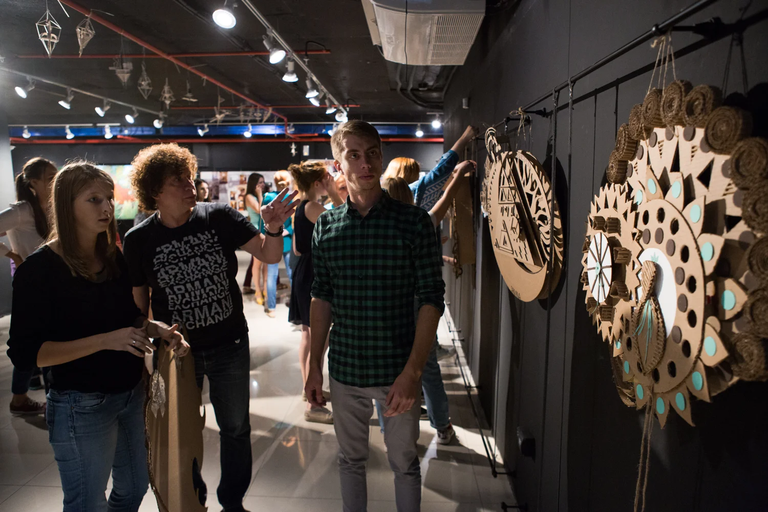Для начала все желающие смогли заглянуть за кулисы учебного процесса — в течение шести часов под руководством заведующего Кафедрой интерьера Архитектурной академии Вячеслава Козлова студенты-дизайнеры второго и шестого курсов мастерили из гофрокартона сказочные, в полном соответствии с полученным заданием, часы. Ажурные результаты ворк-шопа «Время» были вывешены на стенах арт-площадки и полностью удовлетворили, по его собственному признанию, наставника будущих профессиональных дизайнеров.