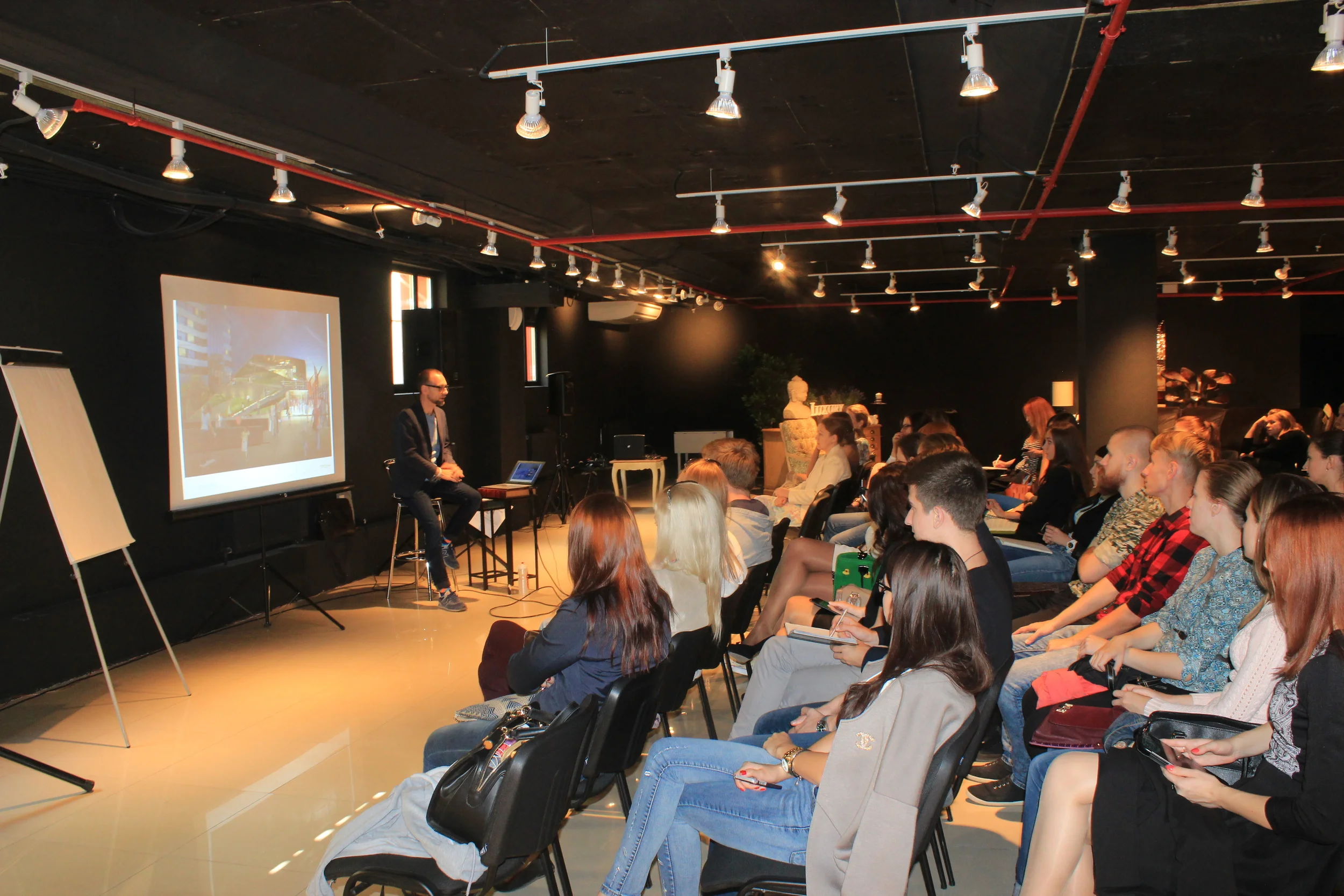 Утро второго дня собрало в арт-пространстве всех, кому были интересны секреты проектирования и реализации эффективных бизнес-объектов — свой мастер-класс провел руководитель архитектурного бюро «Проект» Анатолий Мосин. Известный ростовский архитектор сопровождал рассказ о слагаемых успешных проектов видео-демонстрацией как зарубежных объектов, так и работ своего собственного бюро.