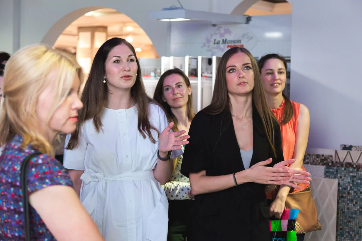 — Очень рады, — обратились спикеры к собравшимся, — видеть всех вас сегодня здесь. Сегодня мы поговорим о современных интерьерах, наша студия работает как раз в этой стилистике...